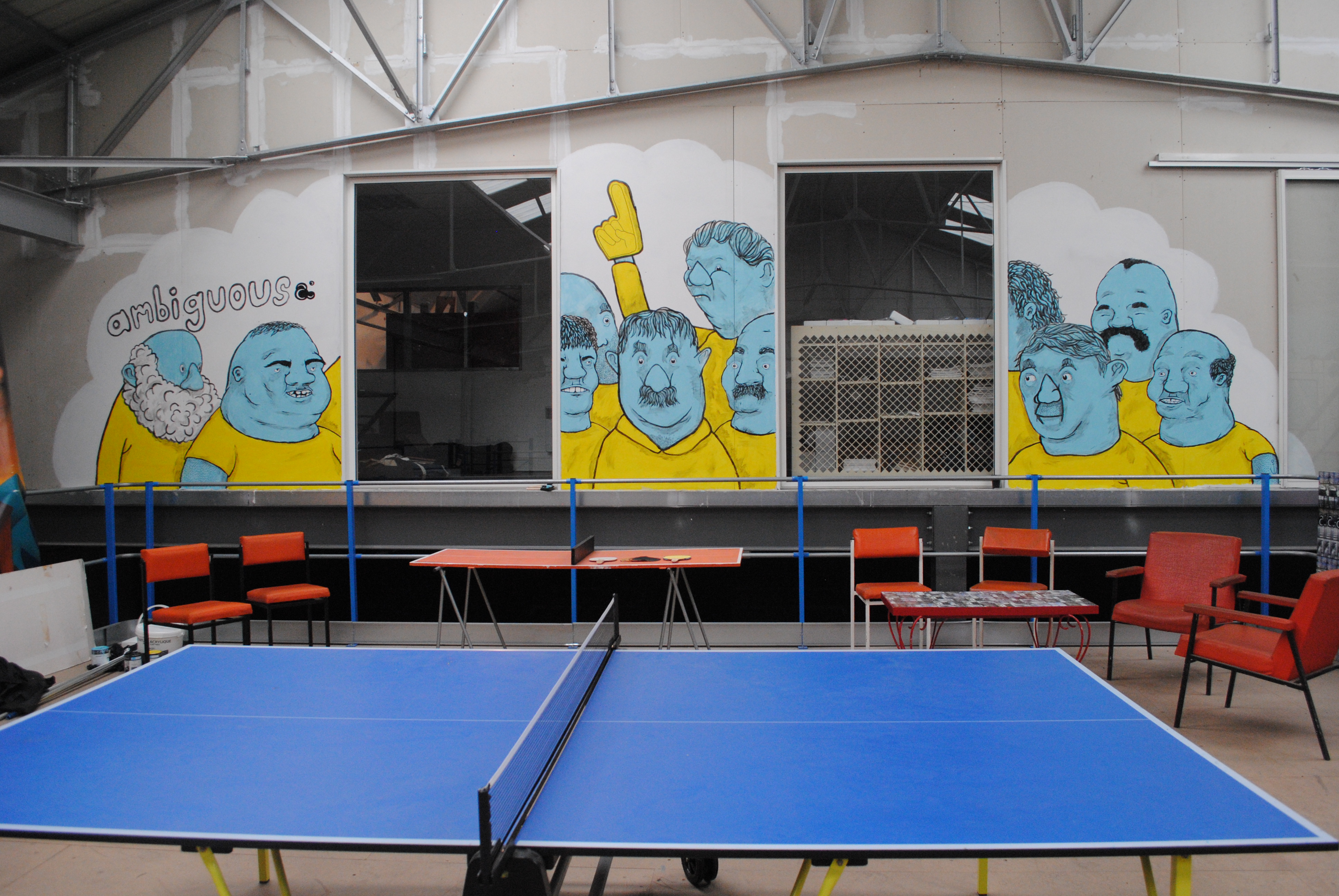 I designed and painted a mural in collaboration with Mitch Froelich at the Ambiguous European Headquarters in Biarritz, France.
