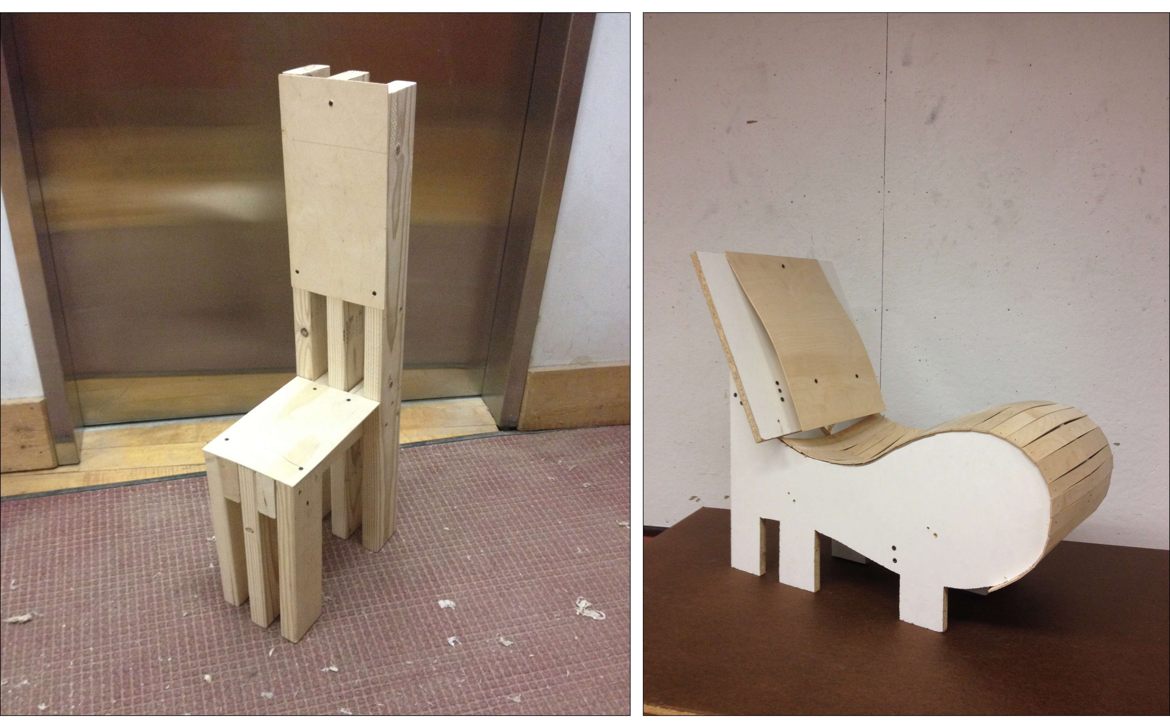 I designed the Elephant & Castle Chairs during my senior year at RISD. The chairs’ bent lamination and CNC routed plywood components come together to create a playful, unexpected experience.